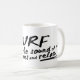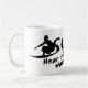 Surfa hör ljud av vågar kaffemugg