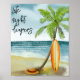 Baby ombord! Babyduschinbjudan - perfekt till en sommardusch. Kultema. Vattenfärgskonstruktionen har en havs- och strandscen med ytbord, handflatan träd och sommarhatt.