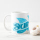 Blåvågen surfar upp i textslogan mugg. Underbar för alla som kärlek i havet, vågar och surfa.
