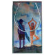 Solnedgång, Yoga dam och surfa boy , berg, konstillustration. Vacker vattenfärg teckning i surfa- och yoga-par.Speciell presentväska för all natur och sport-älskare.