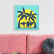 Cute-grafik på strandscen med handflatan träd, surfare och sol. Perfekt för en surfa älskare.