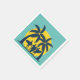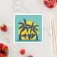 Cute-grafik på strandscen med handflatan träd, surfare och sol. Perfekt för en surfa älskare.