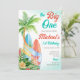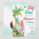 Surfing 1:a födelsedag - den stora mallinbjudan laddas omedelbart ned. Handflatan träd, surfor, tropiska växter, återsnitt för strand, surfning, tropiska födelsedagsfester.