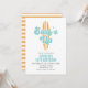 Surfans Upp! Surfboard-födelsedag inbjuds i turkos och orange.