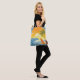 Rund utformning av en strandscen med en liten ö sport vid handflatan träd och surfa som stigning från sanden, omgiven av blått vågar under sol. Den här väskan är fullt anpassade.