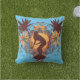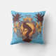 Detta festliga utomhus- kudder särdrag som en silhouette av en kvinna som rider en surfingbräda, omgav vid palmträd och tropiska blommor",