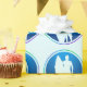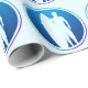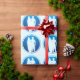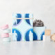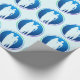 Slå in papper som presenterar surfaresilhouetteinnehav stiger ombord hans surfa. Cirkulärlogotypen i blått med mång- färgmusikband gränsar.