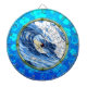 Digital målning av en surfare som surfar röret i en rundabamburam. Med havblått blommar en bakgrund med hawaianska Honu havssköldpaddor och hibiskus.
