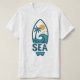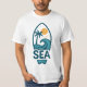 Denna t-shirt har en minimalistisk tropisk illustration: en handflatan-träd och en havsvåg i en ytskiktsform, kompletterad med ord "SEA". Den fångar strandens lättfortgående själ. Perfekt för sommartid, helgdagar eller andra som bor vid kärlek kusten, ger den här garantin en liten bit av havet till ert vardagliga stil.