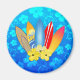 5 Retro Surfboard och gult hibiscus blommor. Med en blå bakgrund av hawaiiska Honu Sea Turtles och Hibiscus blommor.