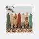Pappra party-servetter med bilder av surfbrädor på stranden.