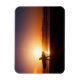 Fotografi av en surfare som bär en surfboard på stranden vid solnedgång.