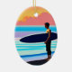Surfer på en båge vid solnedgång julgransprydnad keramik