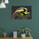 Surfer svart figur och färgvåg på grått poster