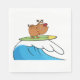 En tecknad stil-bullhund som rider ett surfbord på en våg. Den här designen ser ut att vara effektiv på dessa Pappra servetter