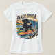 En svart pudel som rider en surfbräda ovanpå en massiv våg och visar på sina imponerande surfningskunskaper i en tropiska ömiljö.