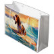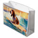 Lägg dig i den lekande världen i hund äventyr med den här fängslande målningen. En andlig hund tar sig till vågar och kör skickligt surfan på en strand som kysstes av sol. Den sjudande konsten fångar på ett vackert sätt kärnan i den upphetsning som finns vid sidan av när hund hänsynslöst rider vågar, och förkroppsligar andan av roligt och frihet. Med en harmonisk blandning av färg och dynamiska penseldrag ger biet dig glädjen att surfa och högerna på stranden in i ditt område och skapar det som ett vackert tillägg till alla konstsamlingar.