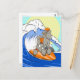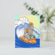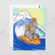 En lustig tecknad illustration av ett pudel på ett ytor. Den här surfande illustrationen av hund har pudel under en stor våg på en orange surfboard. I bakgrunden är en vulkan, ge för att se ut som en hawaiisk surfa-rast. En söt för barn eller någon som kärlek hundar.
