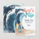 Låt dina gäster veta att du uppskattar att de firar din födelsedag genom att skicka dem dessa surf-tema tack-kort med en akvarell stor våg, surfbrädor och sjöstjärna på stranden med "Surf's Up"-typografi i retro cool bokstavsstil.