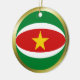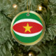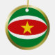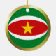 Båda sidor av denna prydnad presenterar flagga av Surinam morphed in i en cirkla med en guld- kant. Enkel surinamesisk dekoration för ditt hem.