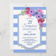 Blå stripe-blommigt - 21:a födelsedag, festinbjudan.