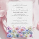 Elegant vattenfärgsmästare skapar en blommigt gräns vid grund i denna överraskning födelsedagsfest inbjudan. Den mjuka pastellblomman, lila, rosa, blått och vitt är födelsemånadsblomman i september som skapar detta som perfekt för din födelsedag i september.