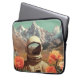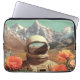 An astronaut stands in a vibrant field of flowers with snow-capped mountains in the background. The reflective visor shows a mesmerizing blend of landscape and distant horizons.