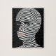 AI producerade konst av ett surrealistiskt ansikte med svart och vitt rand och naturligt färg läppar