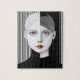 Surreal Black and White Ansikte Red Läppar Pussel