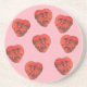 Denna sandstensdryck underlägg ett ljust rosa färg med en cirkel av surrealistiskt tittar som gråter krossat rött hjärta ansikte med droppande tårar.