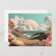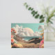Surreal Coastal Landscape With Flowers And Clouds Vykort