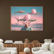A surreal, pastel-toned paradox where strength drifts gently into softness. Sharks float effortlessly above a calm sea, lifted by delicate pink balloons, while blossoms obscure the figure below—turning instinct and danger into something quiet and dreamlike. The warm horizon and smooth retro palette create a sense of suspended time, where fear dissolves into curiosity and contrast becomes harmony. This artwork feels whimsical yet symbolic, blending irony, beauty, and imagination into a visually unforgettable scene that invites playful interpretation.
