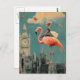 Surreal Fantasy Child Rides on a Rosa Flamingo Vykort