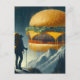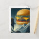 Surreal Hiker Giant Cheeseburger över bergen Vykort
