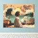 A captivating surreal scene where inner emotion transforms the ordinary into something extraordinary. A quiet figure sits calmly as towering ocean waves rise through the walls of a retro-styled room, blending domestic stillness with raw natural power. Soft sunset tones, rolling clouds, and vintage interiors create a cinematic balance between calm and chaos, introspection and imagination. This artwork feels deeply atmospheric and symbolic—perfect for those drawn to emotional surrealism, dreamlike narratives, and art that captures the meeting point of inner worlds and external reality.