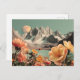 Surreal Mountain Landscape With Blooming Flowers Vykort