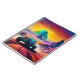 En futuristisk bil susar genom ett vidsträckt ökenlandskap med höga klippor och en glödande horisont målad i varma orange, rosa och violetta nyanser. De jämna rörelselinjerna och djärva färggradienterna skapar en filmisk, utomjordisk scen som känns äventyrlig, expansiv och visuellt slående.