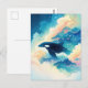 This breathtaking postcard features a majestic orca whale gliding surreally through a dreamlike atmosphere where the ocean meets the sky. The killer whale's sleek black and white body is speckled with shimmering stardust as it passes through a vibrant canopy of teal and deep blue celestial trees. Billowing clouds in soft peach, cream, and pale yellow tones create a sunset-inspired backdrop, while tiny white birds and glowing stars drift through the hazy air. The ethereal lighting and painterly textures give this piece a powerful sense of freedom and magical wonder. This postcard is an ideal choice for sending an inspirational message, a thoughtful "thinking of you" note, or for use as a stunning piece of surreal nature-inspired wall decor.