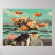 Surreal Portrait With Goldfish Flowers And Ocean Poster