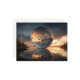 Surreal visualization of a giant reflective sphere containing glowing clouds and sunset mirrored over a calm lake surface. Perfect for concept art, 3D visualization, digital matte paintings, and creative projects requiring surreal reflective elements.