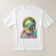 A multi-colored T-shirt with the text "SURREAL" reflected in the sunglasses. The text " BECAUSE REALITY IS THE LEADING CAUSE OF STRESS" is written at the bottom. This vibrant, colorful art is reminiscent of the seventies.