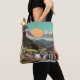 Ett vattenfall i serene flödar genom ett lush-tropiskt landskap, omgivet av vibrerande löv. Det stigning sol kastar en varm glöd över de torra bergen i bakgrunden.