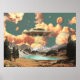 Surreal UFO Above Mountain Lake with Planets Poster
