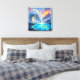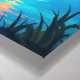 Sci fi surreal wall art. En vacker illustration, vit drake tittar på en goldfish medan vulcanos utbryter i bakgrunden.