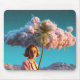 A surreal, cinematic moment where calm rebellion meets dreamy symbolism. A composed figure stands beneath a floating cotton-pink cloud, holding a palm tree like a personal totem against a vast, star-dusted sky. The contrast between soft pastels, distant mountains, and subtle retro styling creates an atmosphere of introspection, freedom, and gentle defiance. This artwork feels effortlessly cool and poetic—capturing the beauty of solitude, imagination, and choosing your own rhythm in a world that never stops moving.
