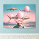 Surrealistisk drömlandskap med hajar och ballonger canvastryck