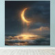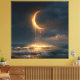 Surrealistisk gyllene halvmåne ovanför havet canvastryck