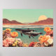 Detta surrealistiska havskonstverk avslöjar en lugn värld där majestätiska valar glider utan ansträngning genom kristallklart vatten under en tyst ökenhorisont. Ovanför ytan skapar varma sandiga berg och en låg sol en stillsam, nästan tidlös atmosfär. Nedan öppnar sig havet till en livfull korallträdgård, levande med mjuka texturer, lysande färger och ömtåliga blomformer som suddar ut gränsen mellan havsliv och blommor.