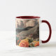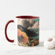 Surrealistiskt berglandskap med planeter och moln mugg