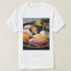 The colorful sushi rings stand out against the round black plate. The elegant and well-balanced visuals quietly speak to the beauty of Japanese cuisine.